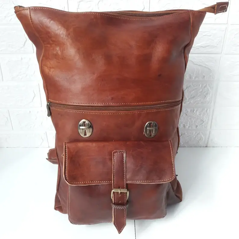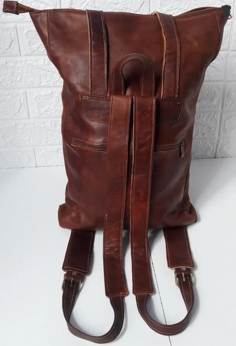 Rolltop real leather backpack,backpack with pockets,Moroccan leather bag,Shoulder Bag,Wanderlust Bag,Leather Satchel Cross Shoulder Straps